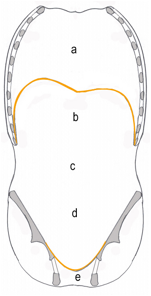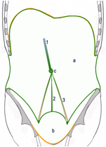 comporte trois niveaux correspondant aux rŽgions : sus-ombilicale ou thoraco-abdominale (b),
