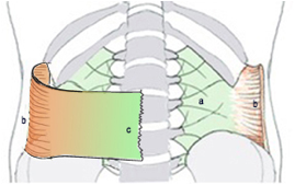 pubienne. La base dÕinsertion thoracique se confond avec les digitations du