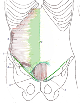 leurs fibres le long de la ligne xipho-pubienne constitue la ligne blanche.
