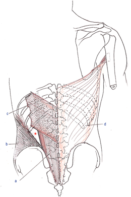muscles larges (b), les psoas (c), les carrŽs des lombes (d) et la musculature