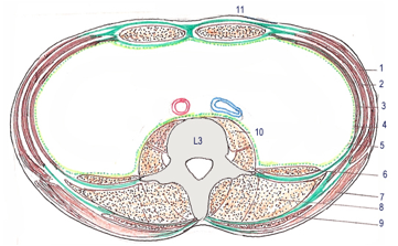 deux travŽes de doigt la sŽparent du rebord costal. - L3 est un important relai musculaire. - Le volume compris entre les deux crêtes iliaques et le