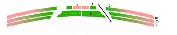 en arcs concentriques intercalŽs entre les grands droits en avant et la