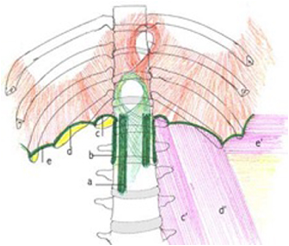 livrant passage ˆ lÕartre mammaire interne / jd & jg : nerfs phrŽniques droit & gauche / S : chaine