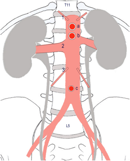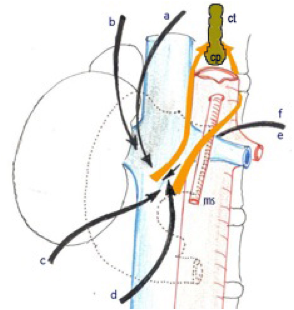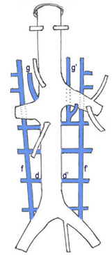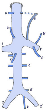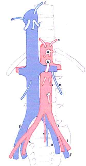 vaisseaux Žmanant de lÕaorte abdominale (e). Ce dernier relais (d)