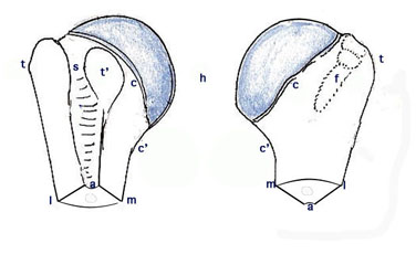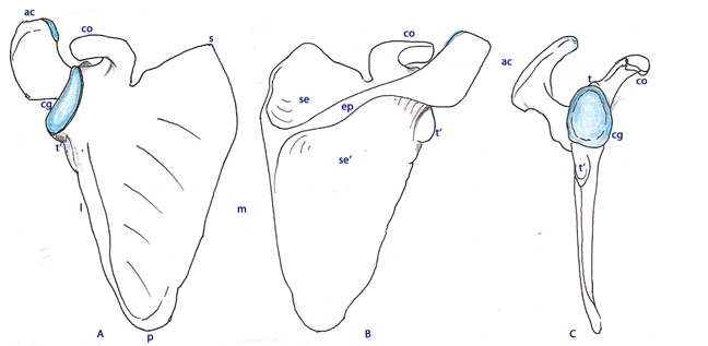 p : pointe / s : sommet / se : fosse sus-pineuse /